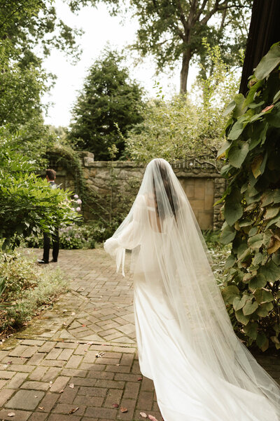 The first look in the gardens felt straight out of a dream. Joey waited for his bride surrounded by soft light and greenery. First looks are so precious for me to observe and capture. I love the moment they both see each other and you can just see them melt into each other.