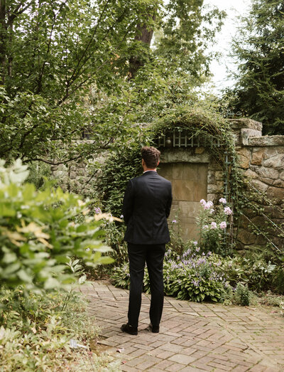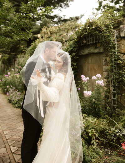 The gardens were so beautiful and dreamy, we went straight into some bride and groom portraits. We wandered through the grounds from the gardens, to the overlook, the courtyard, and near their intimate ceremony site.